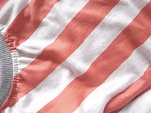 淡いオレンジ×杢ベージュ色のボーダーです。